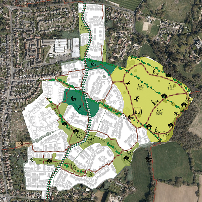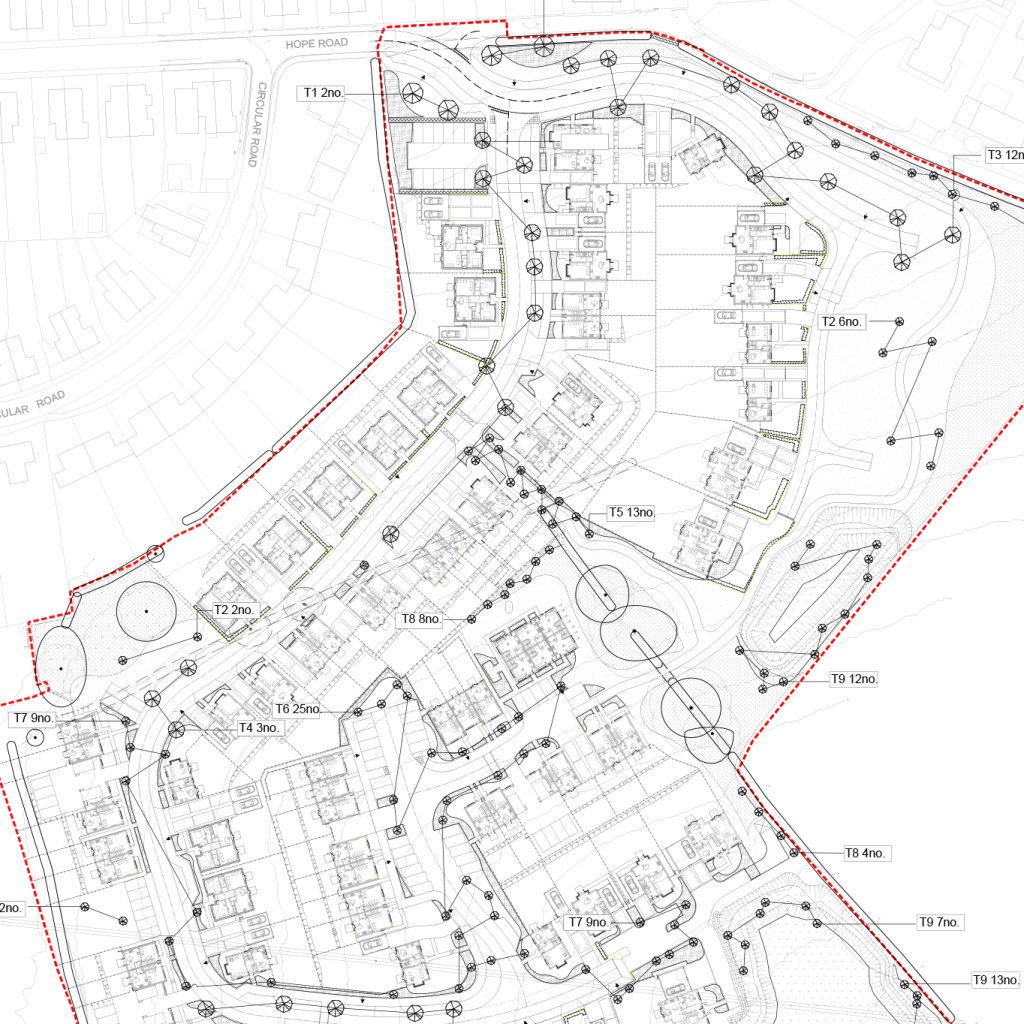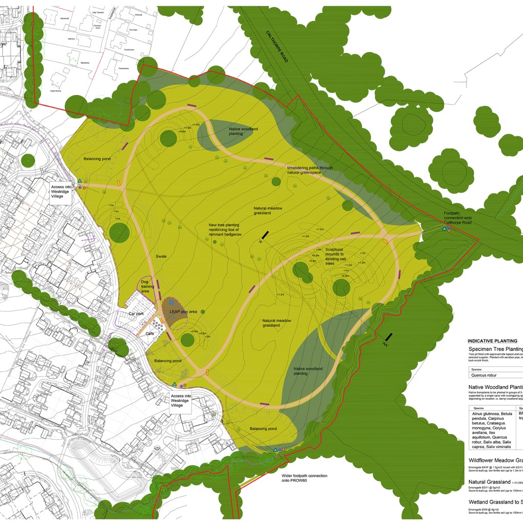 Landscape and visual impact assessment (LVIA) as part of EIA for 400+ unit residential development. Landscape strategy and detail landscape design for SANG and phase 1.